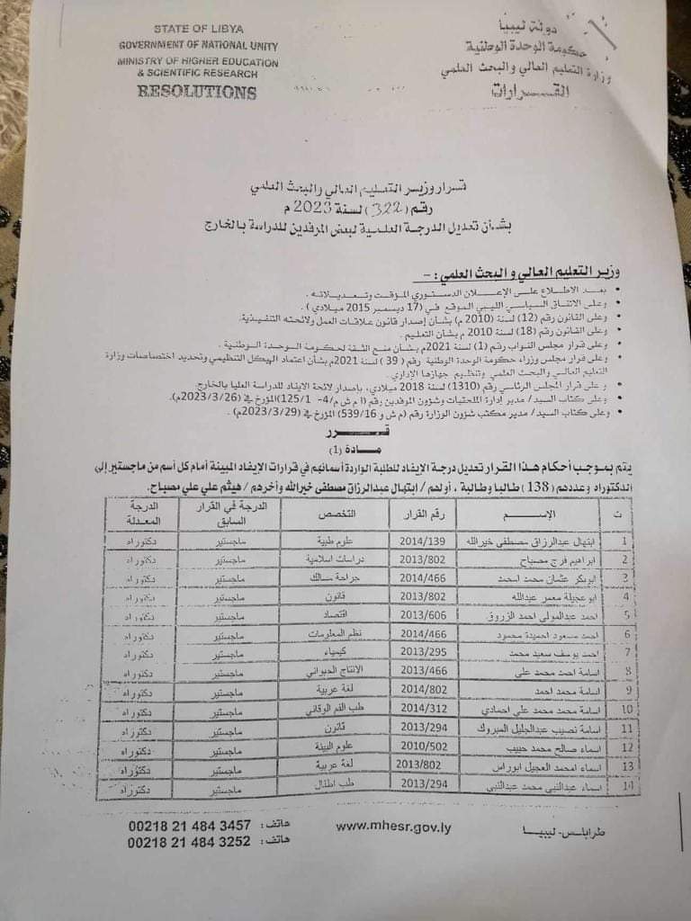 قرار رقم 322 [تعديل درجة] لسنة 2023